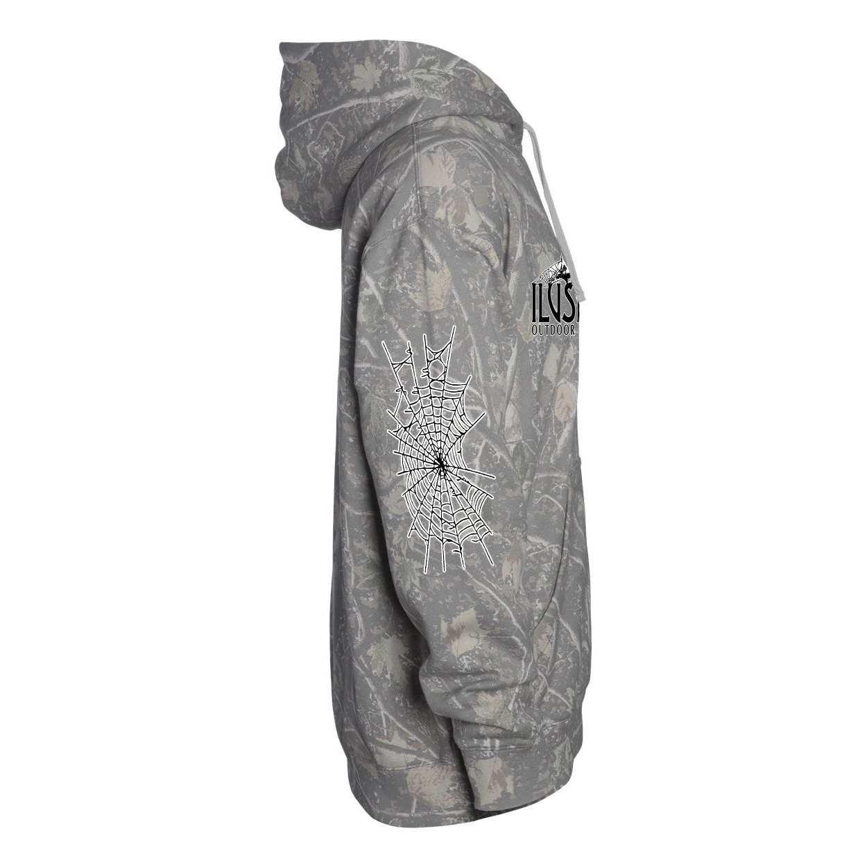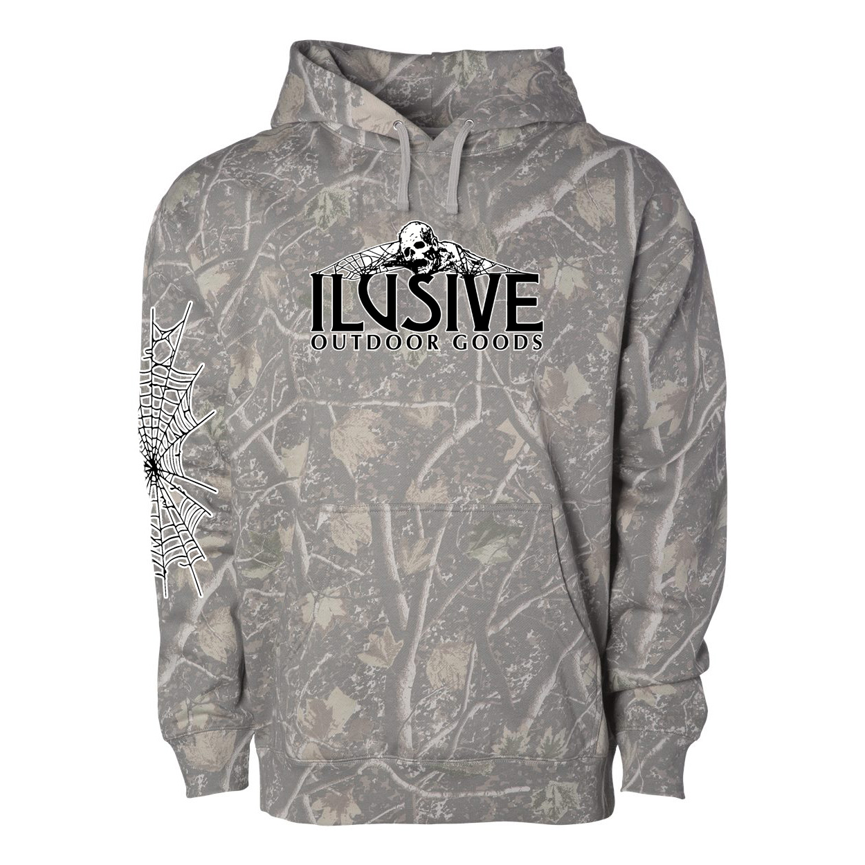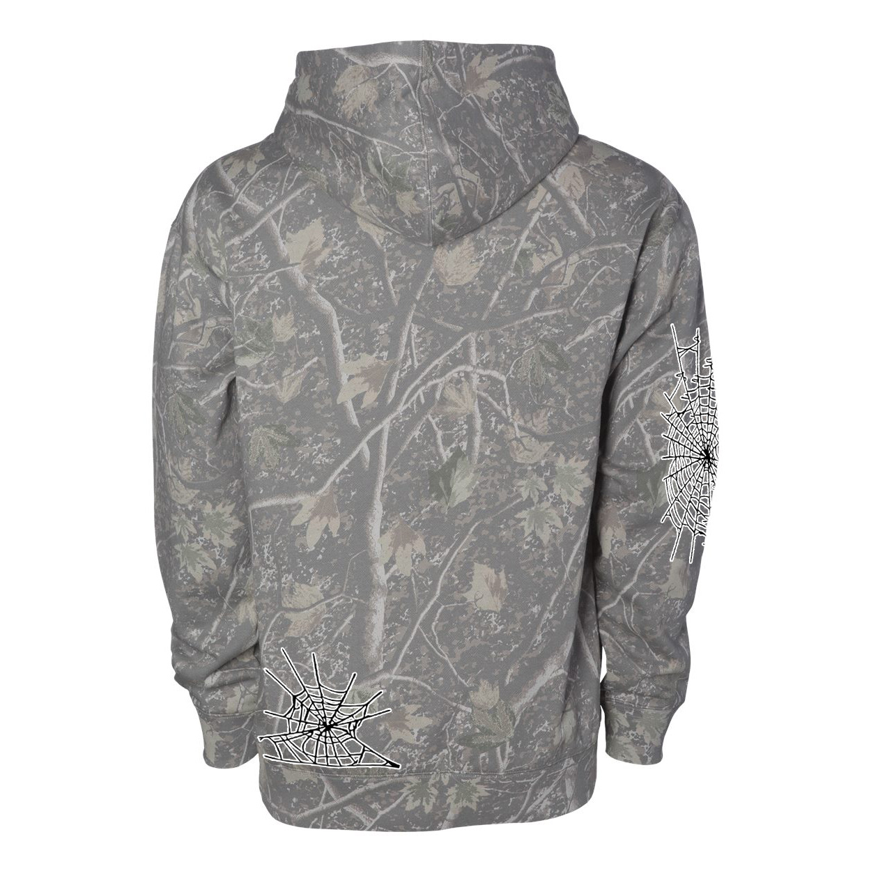A heavy weight, relaxed fit hoodie in deadwood print. This hoodie has a center chest print, lower back print, and a right sleeve print.